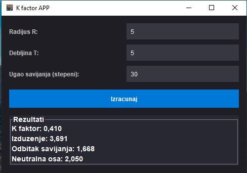 Program je napravljen i testiran od naše strane u različitim uslovima rada i za različite parametre. Sama tabela na osnovu koje softver uzima informacije ide sa programom i dobijate sve u okviru jednog ZIP paketa. Tabela na koju se povezuje program je prilagođena S235 limovima. U zavisnosti od materijala i iskustva koje imate u procesu proizvodnje potrebno je prilagoditi radijuse savijanja. Na neutralnu osu, a samim tim i rastezanje komada u zoni savijanja zavisi i materijal koji se savija.